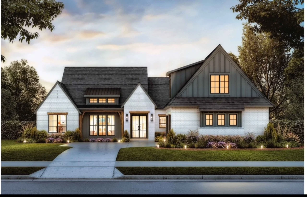 Exterior Veneer: Painted white brick with board and batten on the 2 dormers